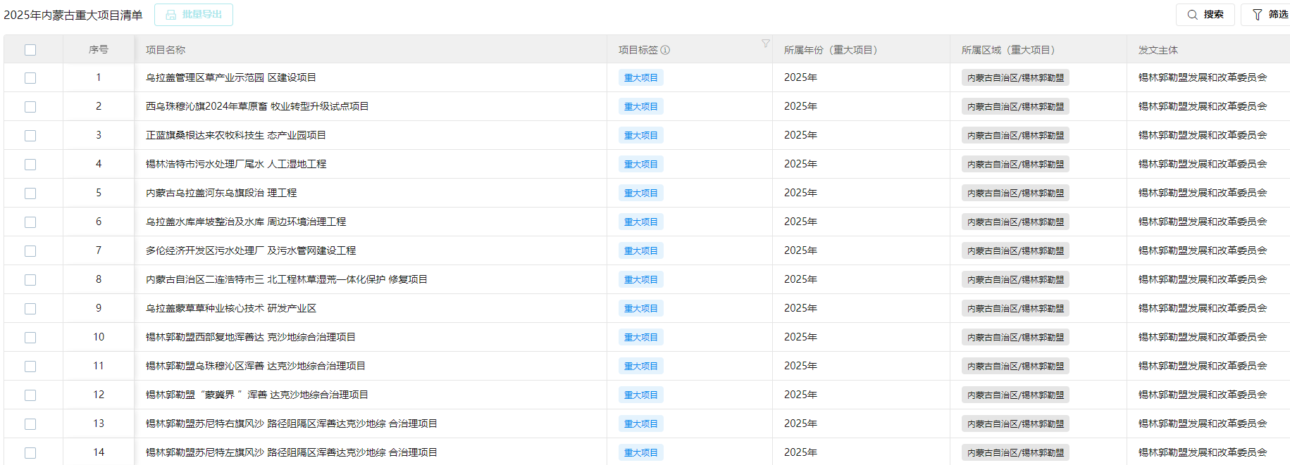 查询政府官方发布的重大项目清单和规划。整合内蒙古自治区(包含地级市)2025重大项目,含标准化项目清单及明细。