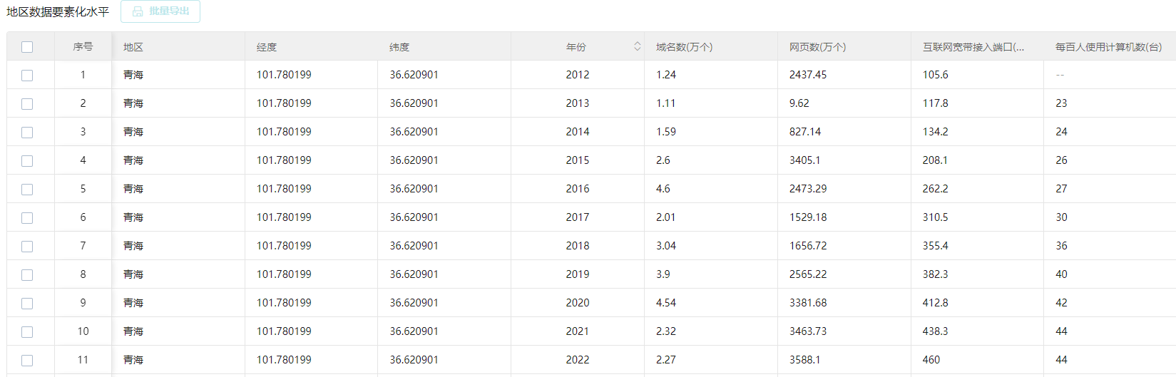将软件业务销售收入作为数据要素化的代理变量来衡量各省数据要素化水平。